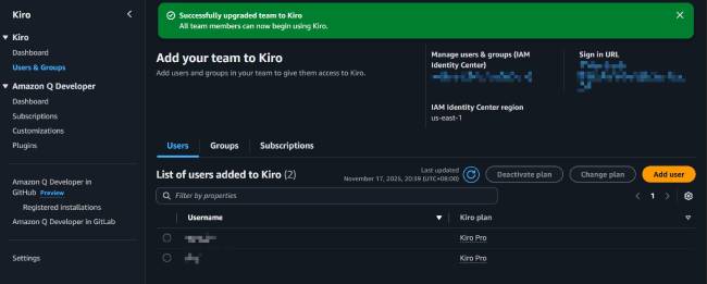 至此即完成了訂閱的升級。原本 Amazon Q Developer Pro 的訂閱已被取消,被升級為了 Kiro 訂閱。