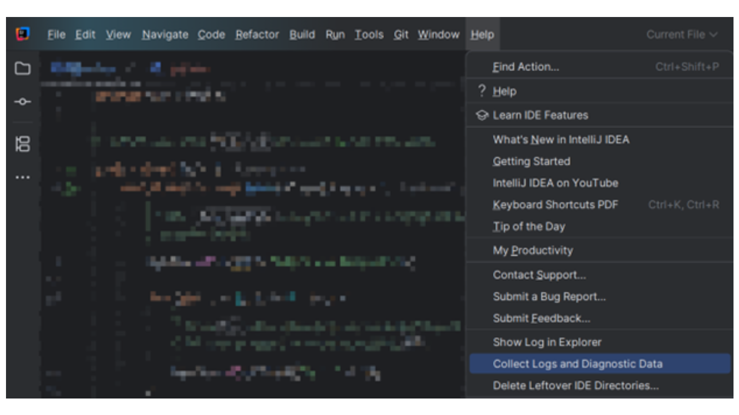 登入後,聊天視窗右上角有匯出日誌的按鈕。此方式會匯出一個 zip 格式的壓縮包,解壓後請關注裡面的 idea.log 檔案